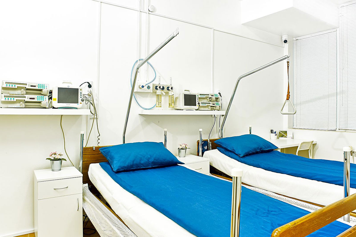 - 25 болнични легла, като всяка болнична стая разполага със собствен санитарен възел, легла с дистанционно управление, безплатна телевизия и безжичен интернет